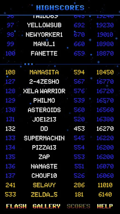 - Addition of a player search function added - find a specific player to see his/her score and rank on the leaderboard. Click on the name to start following the player. The names turn in yellow. Click again to unfollow.