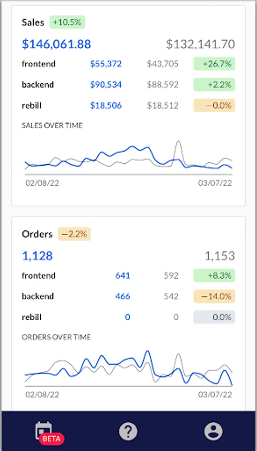 -- See how many new and returning customers are acquired daily, weekly, monthly, quarterly and yearly for each product and funnel so you know exactly who is buying each offer and when
