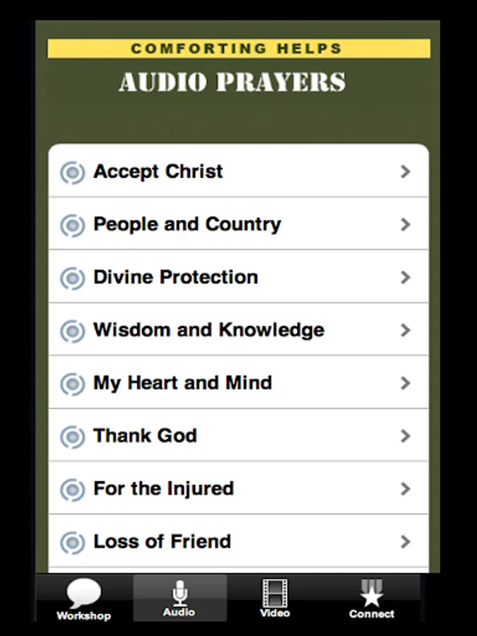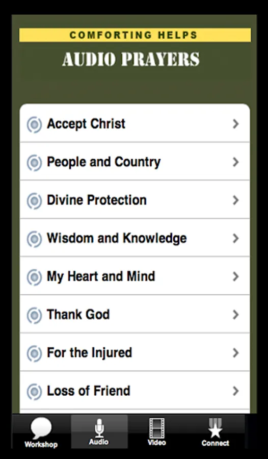 Military Christian Educational Comfort App with prayers for men and women. Prayers, Lessons, Promises, military faith-based Web resources, prayer contacts, etc. NKJV Scripture, nondenominational. By the president of Life to the World Ministries, Inc. a Christian Educational nonprofit organization. Copyright 2021, Life to the World Ministires, Inc, and Word Productions