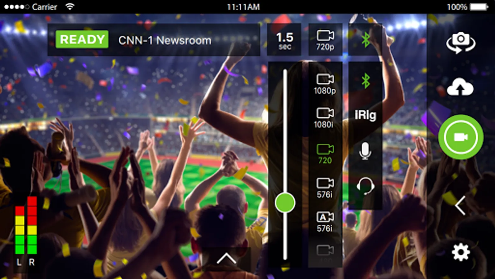 - Is the audio too loud? or maybe you've got an interview with a candidate for "quietest speaker ever" -- LU-Smart now has audio gain control. You can tap the audio indicator icon and slide the gain up and down. You'll notice that it moves a green indicator next to the VU meters up and down, which as luck would have it, is also able to be dragged to set the level!