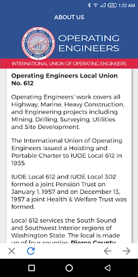 IUOE 612 mobile app was designed to educate, engage, and empower our members while on the go. Download the app for the latest updates on your local, member resources, contracts, political action and so much more.