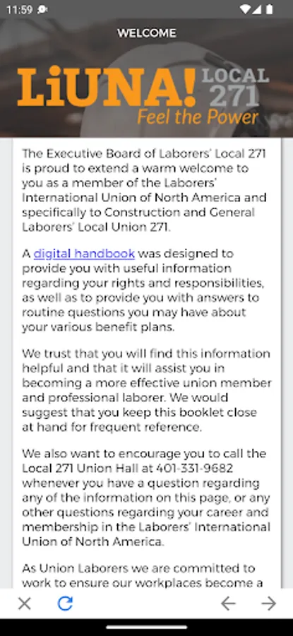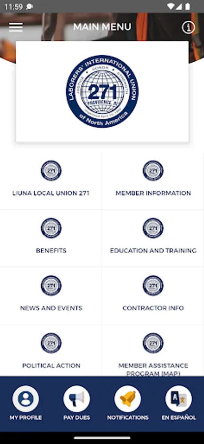 Stay current on all vital information regarding your union membership by downloading LiUNA Local 271's mobile app today. Start receiving push notifications that alert you of important updates. Visit the app often for new organizing material, to make online dues payments, or to view Local 271's latest social media posts!