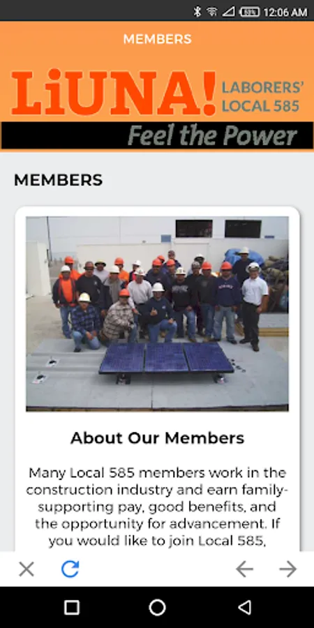 The LiUNA 585 mobile app is designed to educate, engage and empower our Members. This app is to be used as a tool to better understand the benefits available to our Members working in the Industry. This app is only available to LiUNA 585 Members.