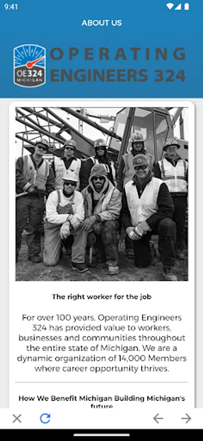 The app to stay connected with Operating Engineers 324. Operating Engineers 324 represents the over 14,000 Heavy Equipment Operators, Heavy Equipment Technicians, Stationary Engineers, and HVAC Technicians that keep Michigan running and have for over 100 years. Roads, bridges, pipelines, windfarms, skyscrapers, boilers, tunnels, power plants, factories, HVAC, and nearly every large scale project and site in Michigan, OE324 members are the ones making it happen and this is the app to keep up on the organization and it's news.