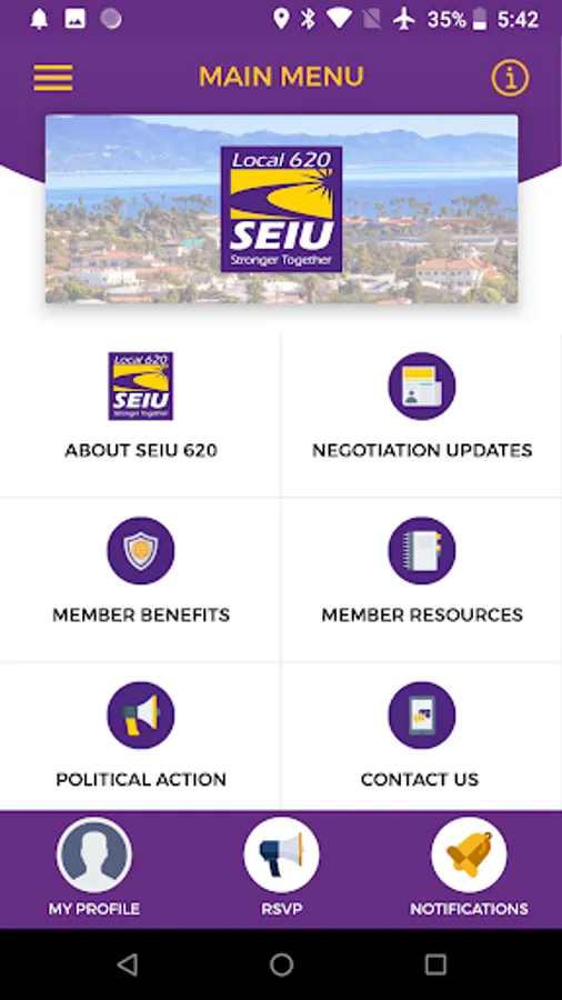 The Service Employees International Union Local 620 app offers Local 620 members important information and valuable resource to keep members connected with their union.