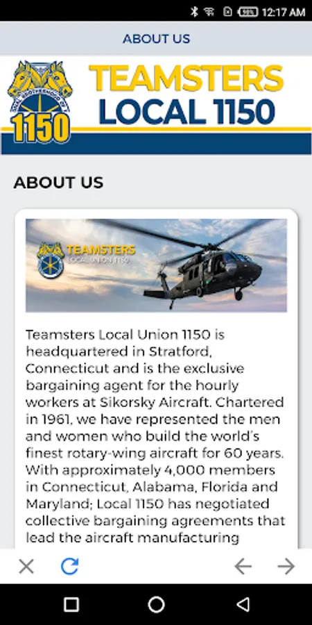 Exclusive app for the members of Teamsters Local 1150 at Sikorsky Aircraft