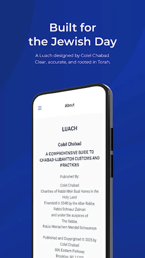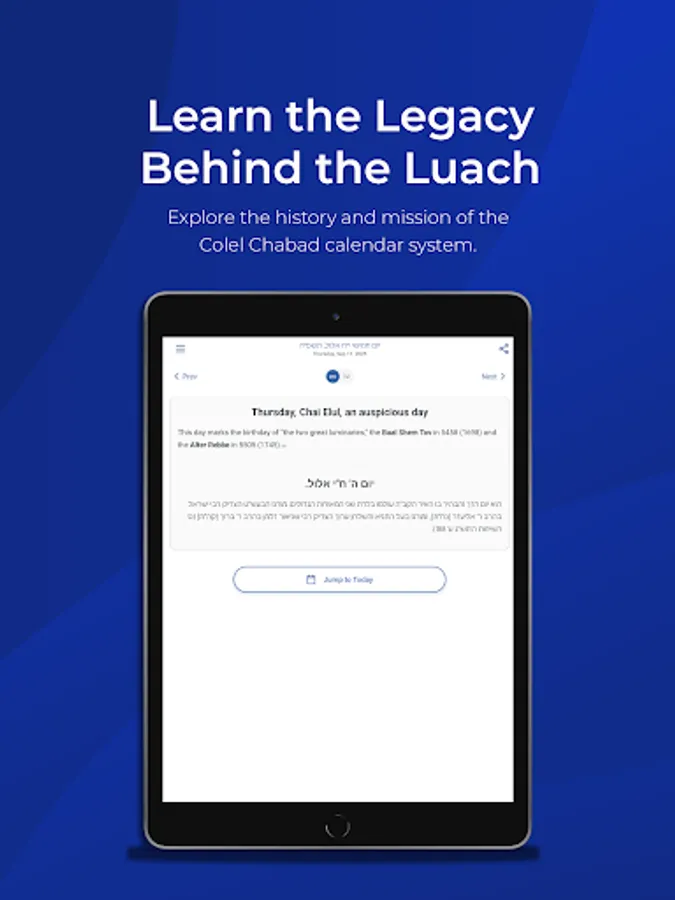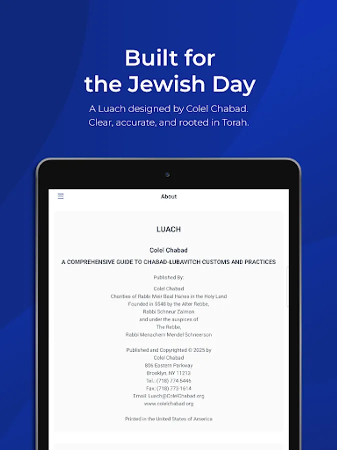 The Luach’s legacy is carried forward in the Luach Colel Chabad Mobile App, offering a built-in Hebrew and English calendar with daily guidance for Jewish living