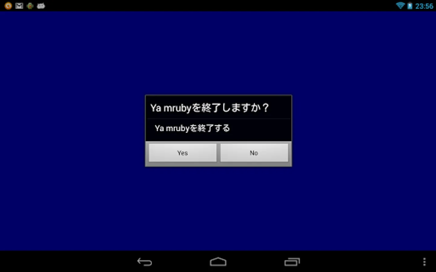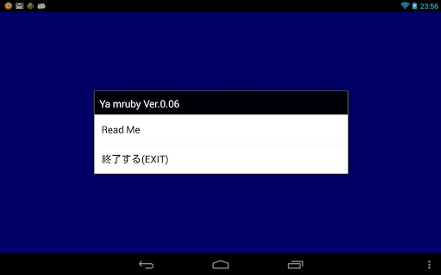 Ya muby has become a mechanism to manipulate and Android using this Marida2. When you run Ya mruby, some scripts are copied yamruby.rb etc. SD memory card under / Yamruby, is executed Yamruby.rb.