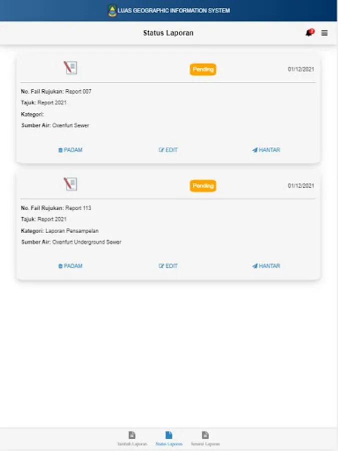 The e-Report application is one of the modules developed in the Board GIS System which is LUASMap @ GIS. This application will help and facilitate the Board to create and prepare reports on the site online which will be stored and integrated ‘live’ with LUASMap @ GIS.