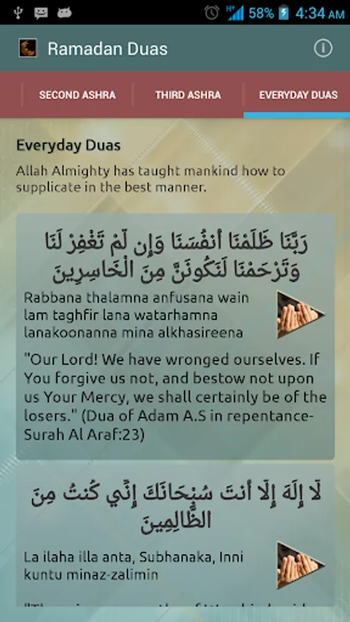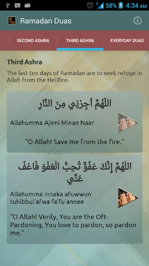 Blessed is the month of Ramadan. Supplicate as much as possible to get maximum benefits from the month of Ramadan. Ramadan Dua app contains authentic Duas for each Ashra and more. Also find translation, transliteration with the Arabic text.