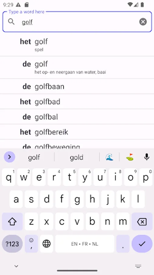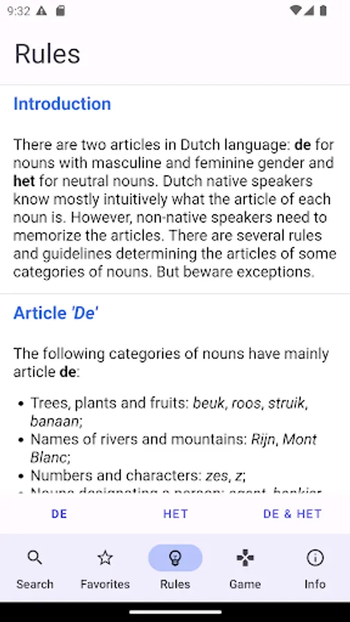 Type the first few characters of a noun and see the article immediately. The app contains a dictionary with more than 73,000 nouns. Optionally, you can display the definition of the noun.