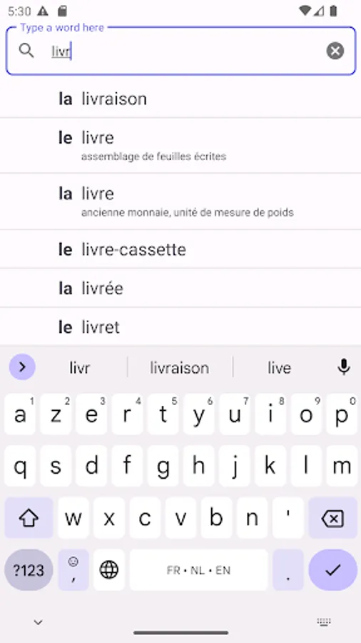 Type the first few characters of a noun and see the article immediately. The app contains a dictionary with more than 42,000 nouns. Optionally, you can display the definition of the noun.