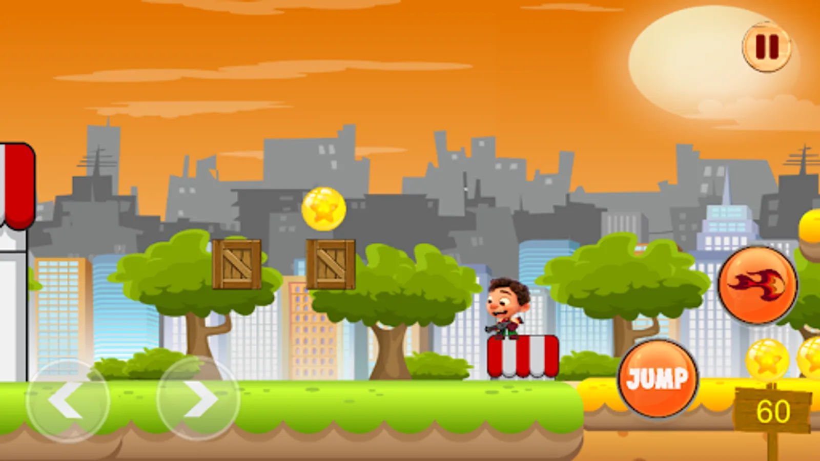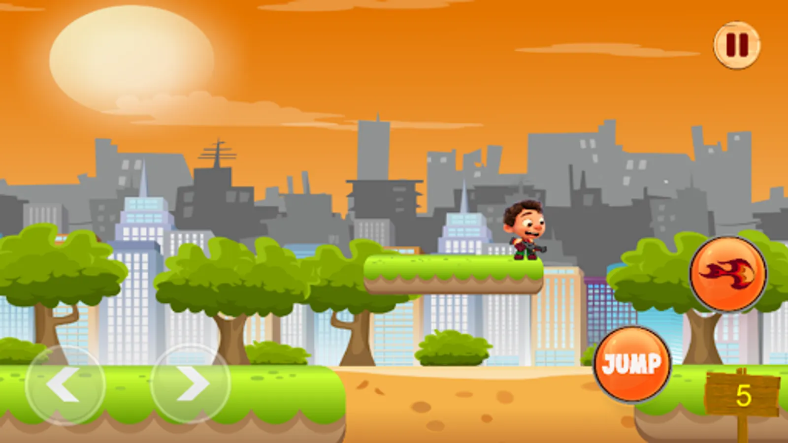 After opening the app, choose your level and start playing, then run, jump and shoot