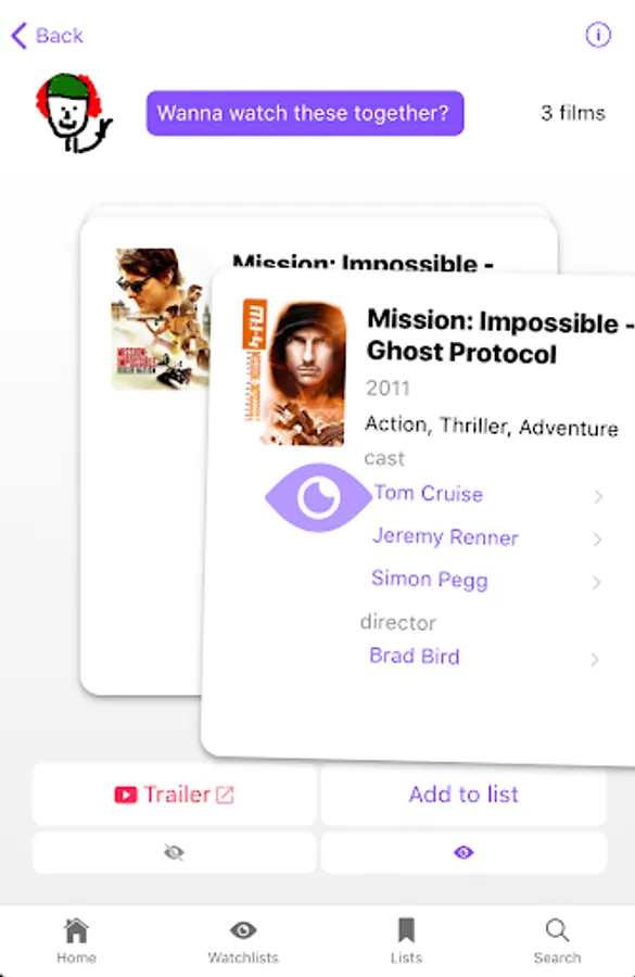 Remember every time someone hasn't seen a few of those MUST-SEE films in your opinion? We all have a list of films we'd want everyone to watch. With CineMatch it's easy to create a custom list and share it through the native share functionality right from the app!