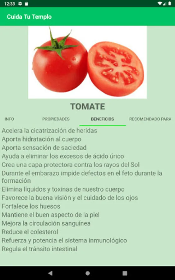 This application was intended as a small reference manual on the benefits, properties and uses of the different foods that we find in nature: fruits, vegetables, plants, herbs, etc.