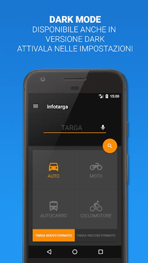 ★ Voice Reading enabling this option infotarga will read the vehicle information for you.