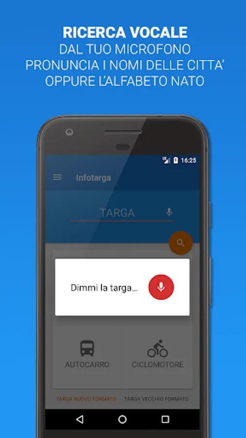 ★ Voice Search allows you to search without using the keyboard, simply by vocally dictating the license plate. It is possible to enter data by using spelling by pronouncing individual letters or associating them, for example, with city names.