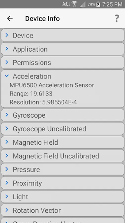 - All "standard" sensors (acceleration, magnetic field, light,...)