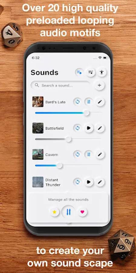Rolify is the perfect soundboard for RPG or fantasy settings that allows you to play multiple sounds in the background simultaneously in loop.
