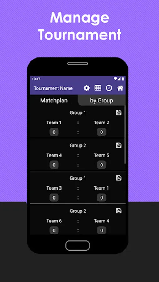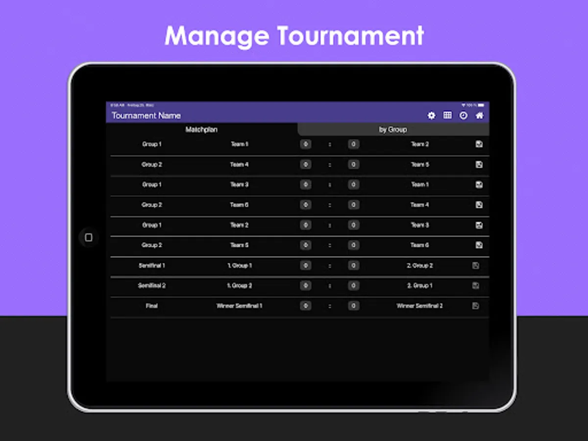 Competition Manager is a manager for tournaments and competitions. It offers the possibility to create tournaments, create tournament plans, execute and manage them. The type of tournament can be designed flexibly, from a simple all-against-all tournament to tournaments with preliminary round, main round and knockout phase. A total of six different tournament modes are available. The teams that advance from each round, length of the knockout round or an optional second round, can be customized to individual preferences. As additional features, the app offers a simple score counter and a timer. The flexibility of the app allows you to add teams even after the tournament has started.