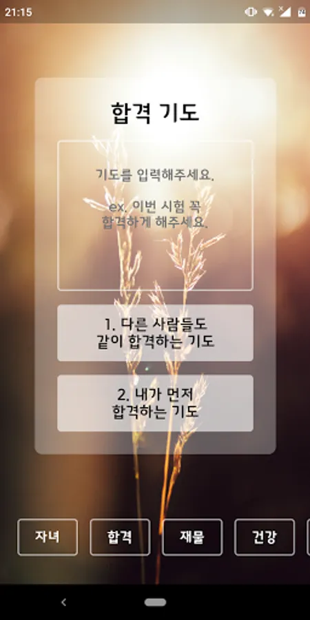 Children's prayer, acceptance prayer, wealth prayer, health prayer, promotion prayer, business prayer, spouse prayer, and real estate prayer are available.