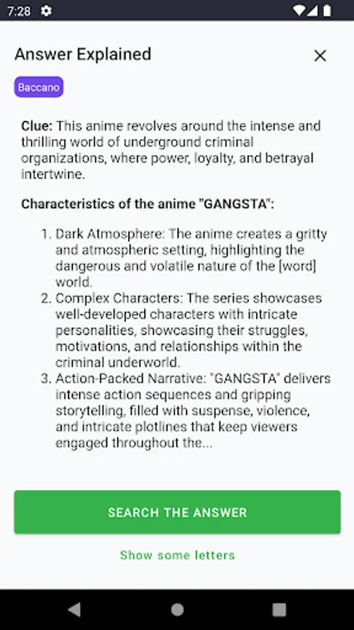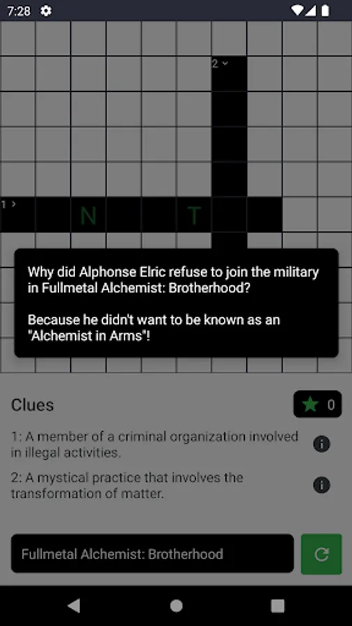 Dive into the world of anime like never before with Anime Legends Crossword Conquest, a puzzle game specifically crafted for anime enthusiasts. It's a thrilling test of memory and knowledge, featuring references to beloved classics and modern favorites alike, including Cowboy Bebop, One Piece, Monster, Hajime no Ippo, Mob Psycho 100, Hunter x Hunter, Neon Genesis Evangelion, Yu Yu Hakusho, FLCL, Baccano, Samurai Champloo, Code Geass: Lelouch of the Rebellion, Demon Slayer, Death Note, Naruto Shippuden, Jojo's Bizarre Adventure, Made in Abyss, My Hero Academia, Dragon Ball Z, Trigun, Haikyuu!!, Attack on Titan, Ouran High School Host Club, and Devilman Crybaby.