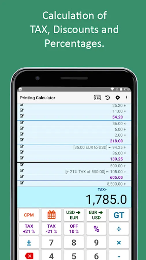 "PCalc" is a printing calculator, specialized for sales, for home or workplace.