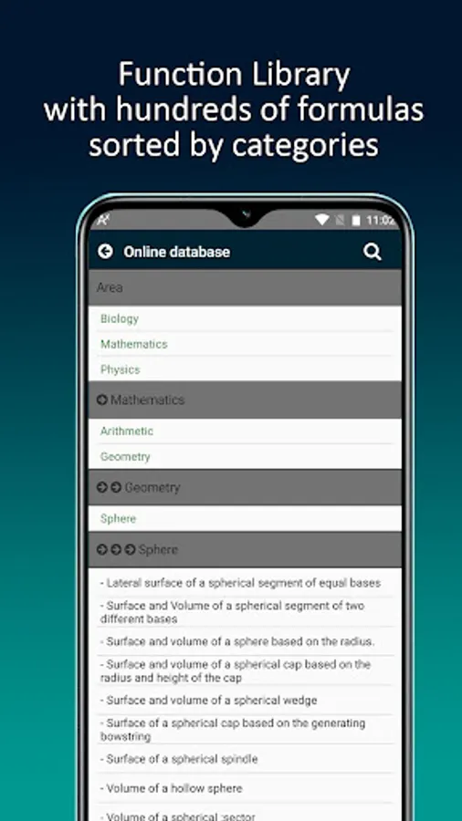 - Hundreds of predefined formulas for mathematics, physics, chemistry, economics, and much more.