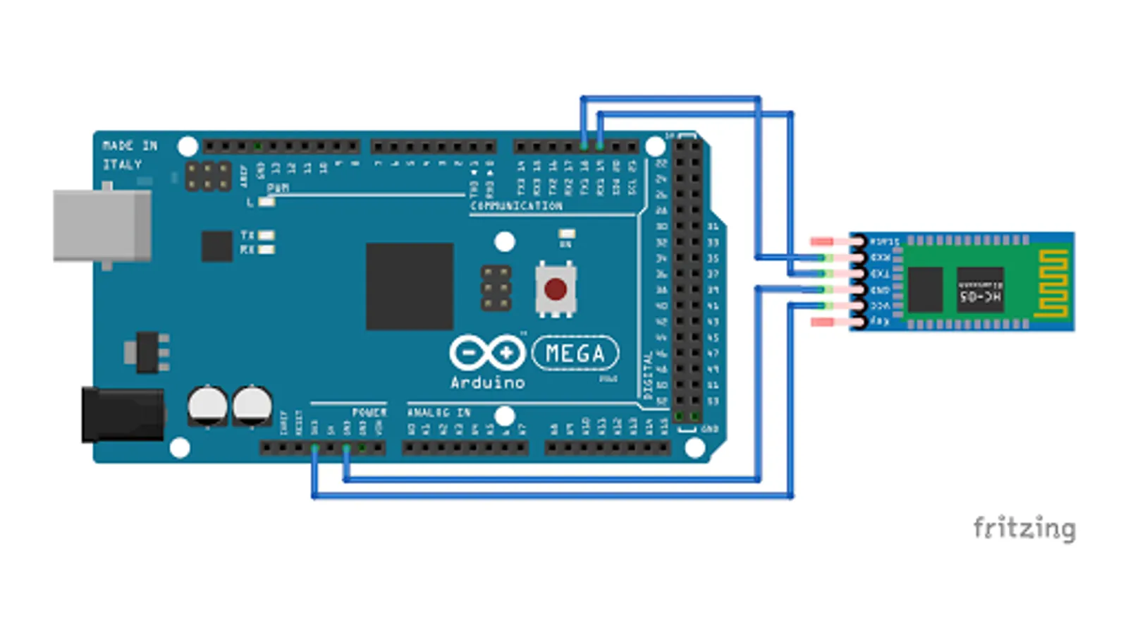 The scheme of the Arduino project is in the images above. Code for Arduino/Genuino Mega for sending and receiving messages, tested on HC-05 and HC-06 bluetooth modules: