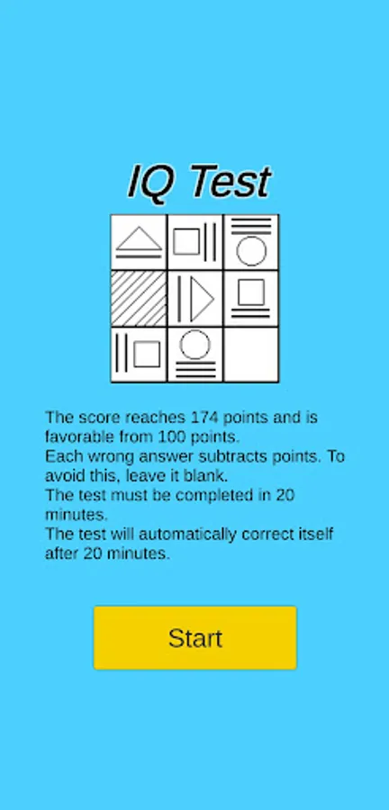 After the maximum time has elapsed, even if the test is not finished, your IQ will be calculated automatically.