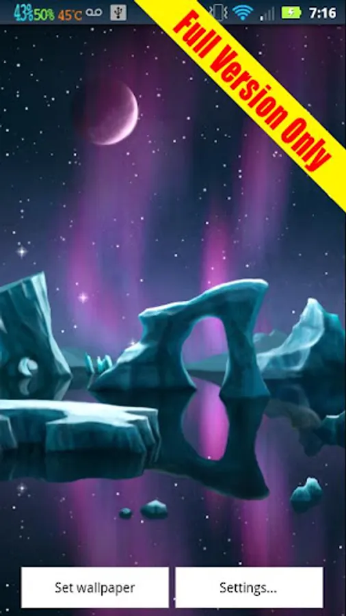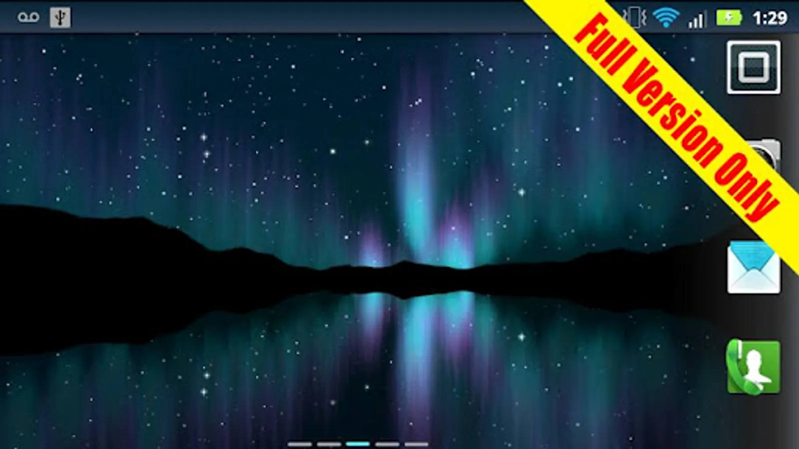 Can't find time to go see the Northern Lights? Now you can watch them on your phone! This limited, free version of Northern Lights live wallpaper creates a real-time simulation of the Northern Lights, also known as the Aurora Borealis. Stars twinkle slowly in the background while the lights dance, and the pattern never repeats.