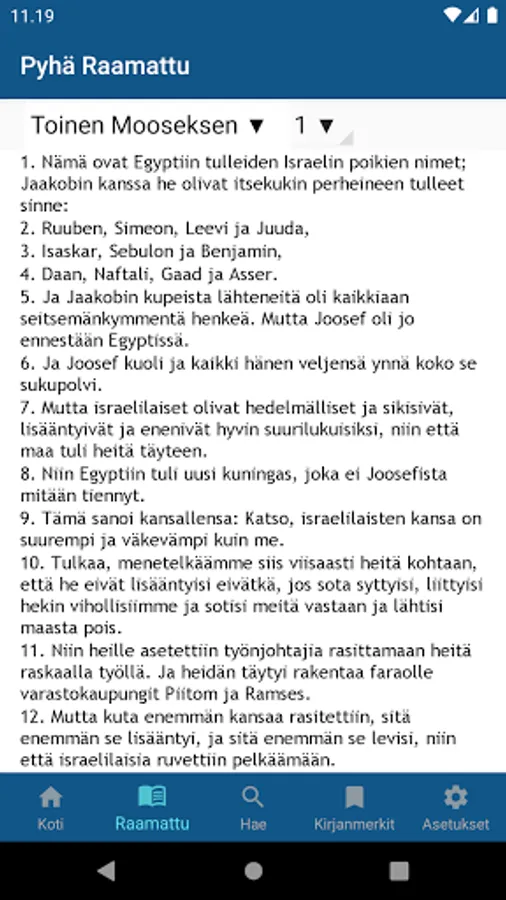 The Old Testament for this Finnish translation was completed in 1933, with the full Bible completed in 1938.