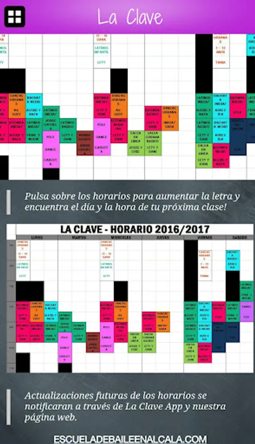 Direct link with the dance school through chat, forms, notifications and social networks.