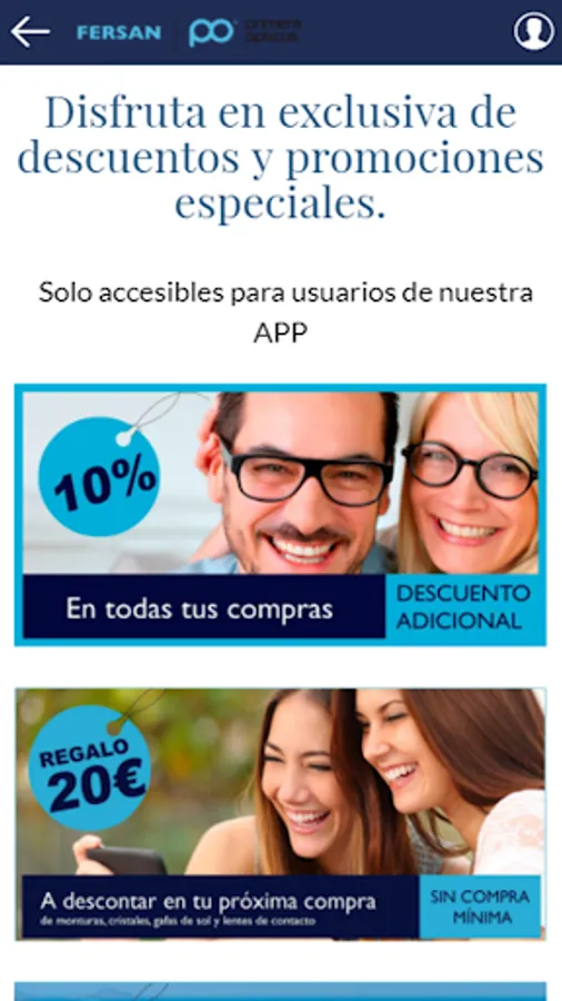 Possibility to make an appointment or locate your nearest center First Optical, participate in exclusive promotions for users of the application.