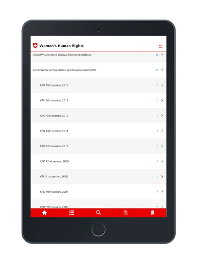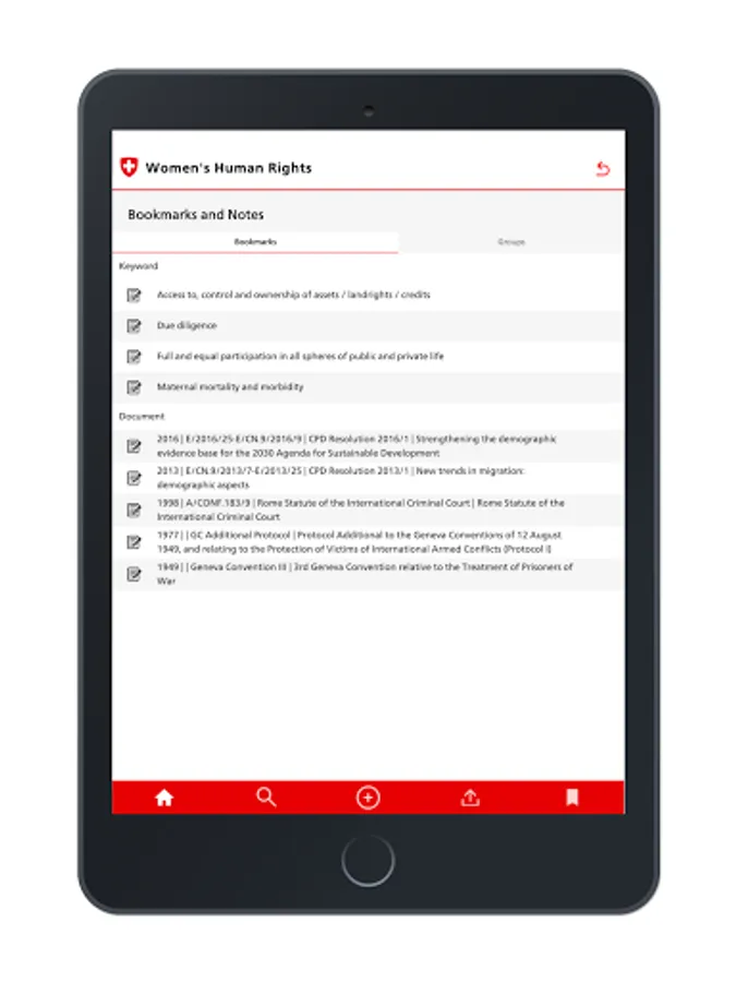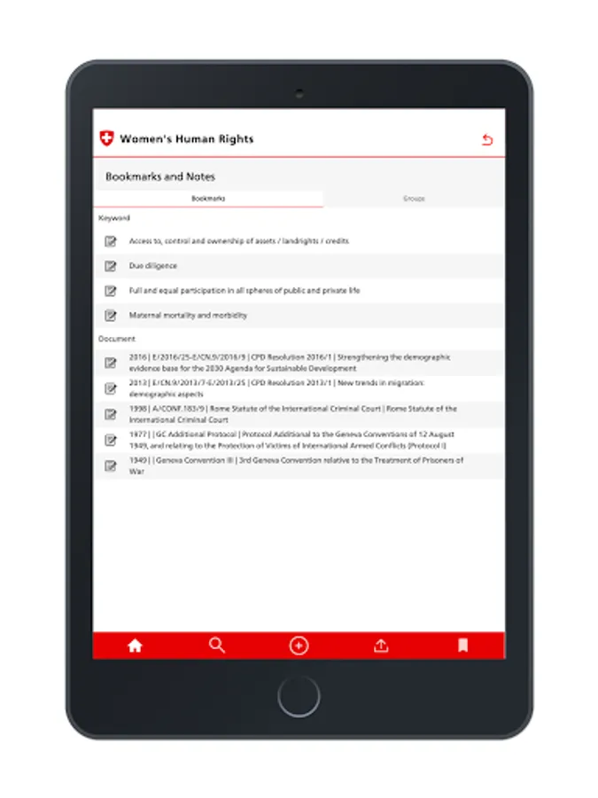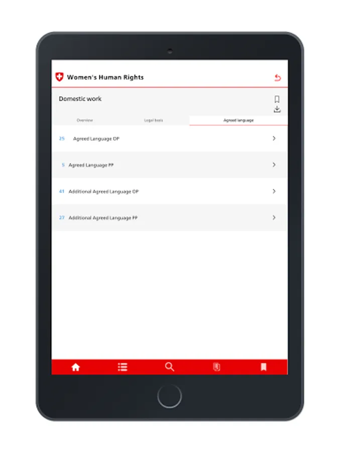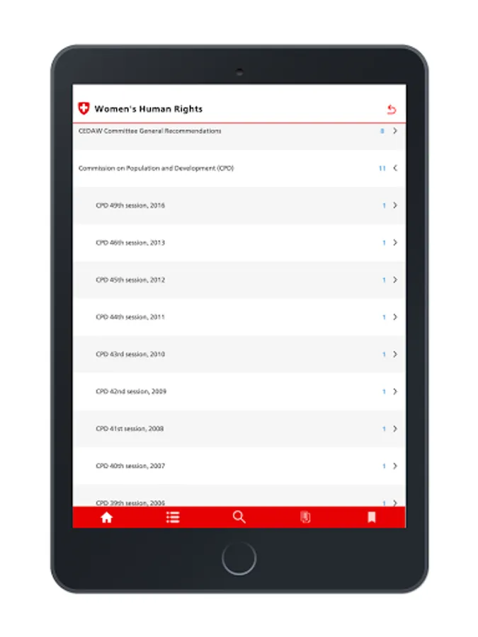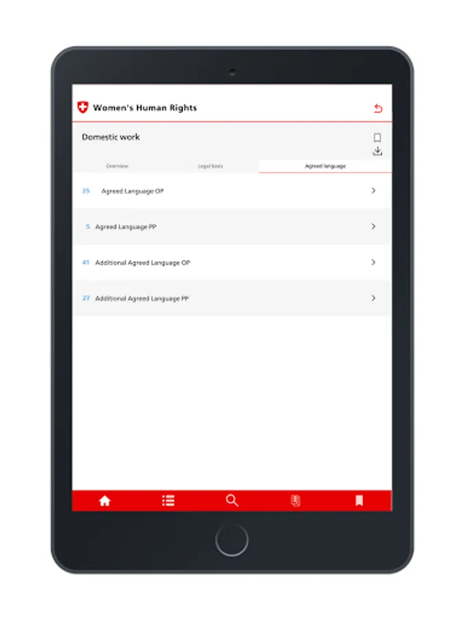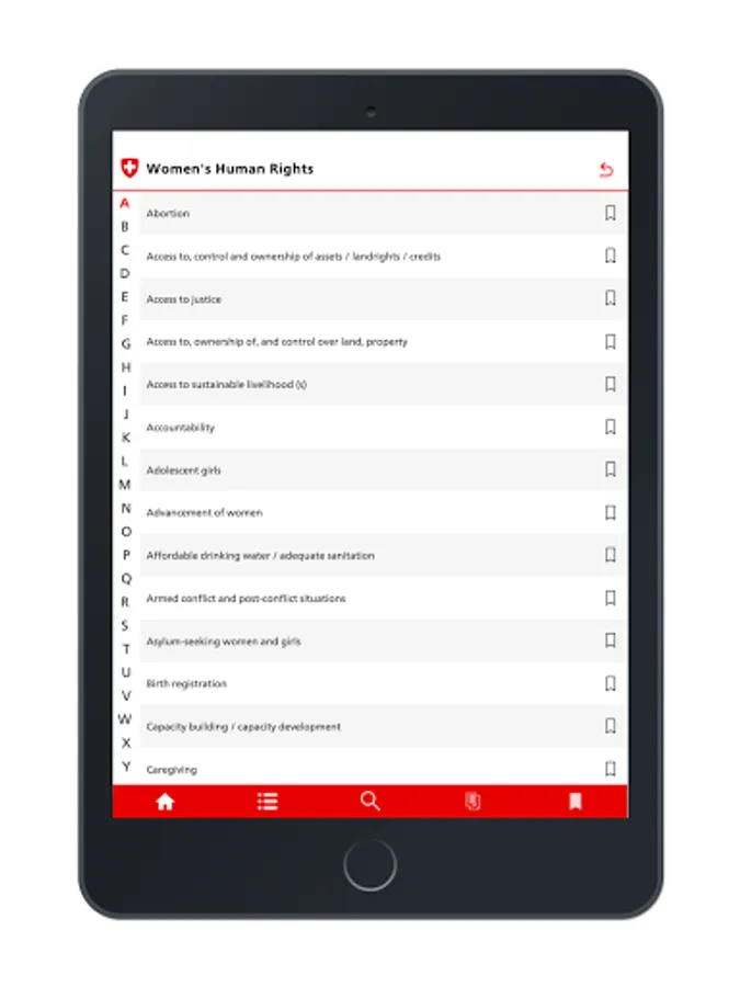 The W’sHR App is a pioneering endeavour by the Swiss Federal Department of Foreign Affairs and the Swiss Centre of Expertise in Human Rights/ Interdisciplinary Centre for Gender Studies database and was developed to facilitate the often challenging and time consuming UN-negotiations. The App is based on a digital database and provides guidance on key issues related to the human rights of women, including international legal instruments and agreed language contained in over 550 documents on women’s human rights adopted by UN bodies such as the General Assembly, Human Rights Council or ECOSOC. The App also provides key paragraphs based on the annual sessions of the Commission on the Status of Women (CSW) and the Committee on the Elimination of Discrimination against Women (CEDAW). The user’s search is facilitated by keywords which cover crucial topics ranging from «Abortion» to «Sexual abuse» and «Widows». The App will regularly be updated with new documents and emerging issues. The latest add-ons are keywords featuring legal instruments on «Women journalists», «Sport and gender» as well as «Digital/cyber violence and harassment». This provides a basis for convincing arguments and enables more coherent and efficient negotiation processes to make further progress in the field of human rights and gender equality. The W’sHR App is user-friendly and intuitive. New features allow users to bookmark relevant language and take notes within the app.
