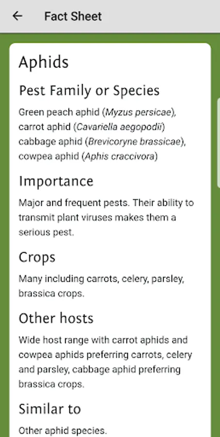 An interactive key and field guide for the identification of insects pests, beneficials, diseases and disorders in Australia.