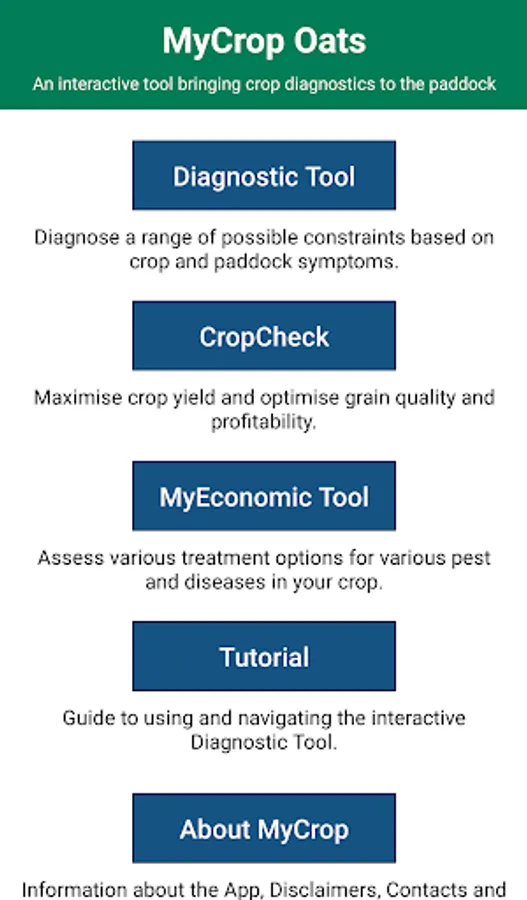 MyCrop Oats is one of 5 apps available in the MyCrop suite of apps. For other crops including wheat, barley, canola and pulses please search your app store.