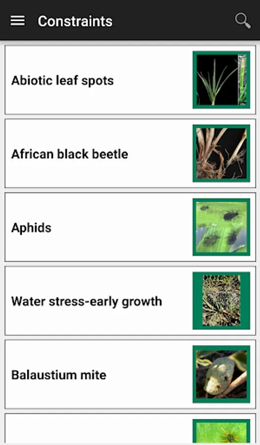 The Diagnostic Tool quickly diagnoses a range of possible constraints based on real-time crop and paddock symptoms. It contains an extensive image and factsheet library for 66 in-crop constraints - helping you to accurately identify constraints and determine possible management solutions. Covering a broad range of diseases, pests, nutrient deficiencies, herbicide damage symptoms and other management and environmental production issues it is bound to be a helpful tool in the paddock.