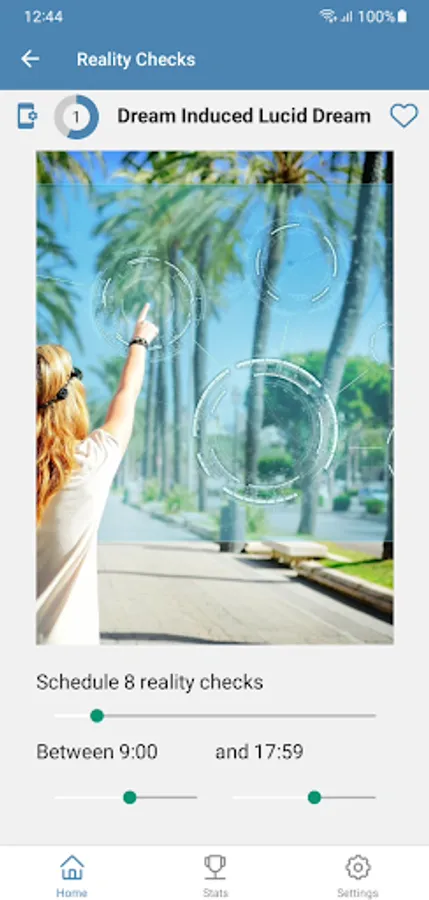 Schedule reality checks throughout the day. Or, to level up XP, set an intention to perform reality checks when you observe something surreal, and tap on the image when you remember to do so.