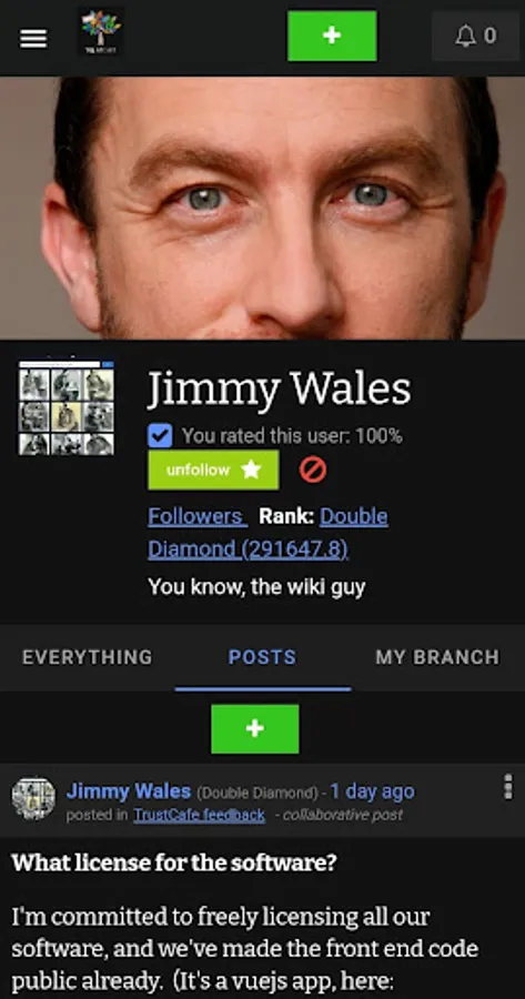 App for WikiTribune Social 2.0, a community-led and community-moderated platform dedicated to creating a space where discussions can thrive.