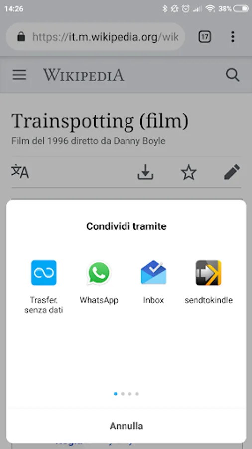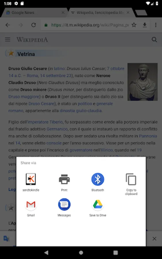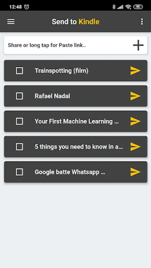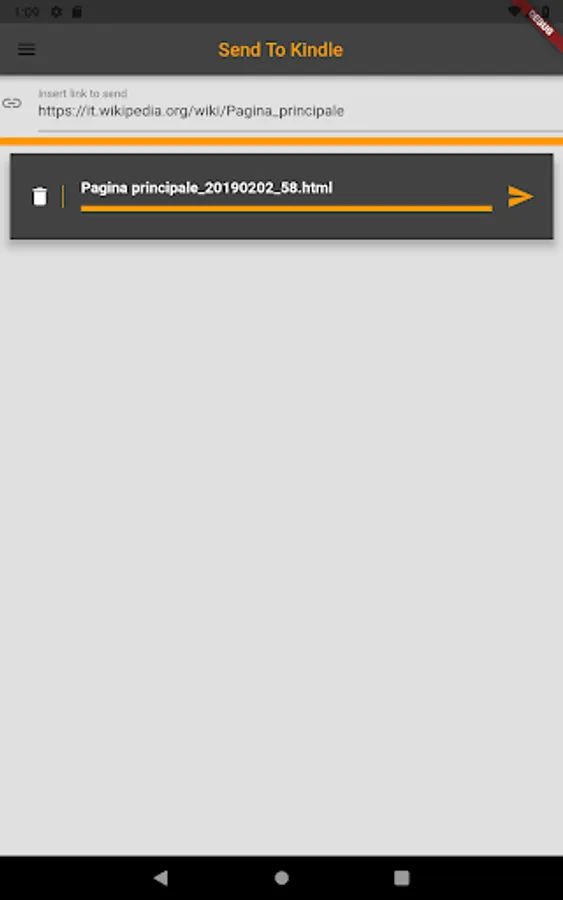 The page will be downloaded and converted into a kindle format and ready to be sent.