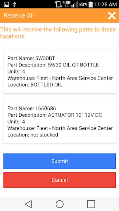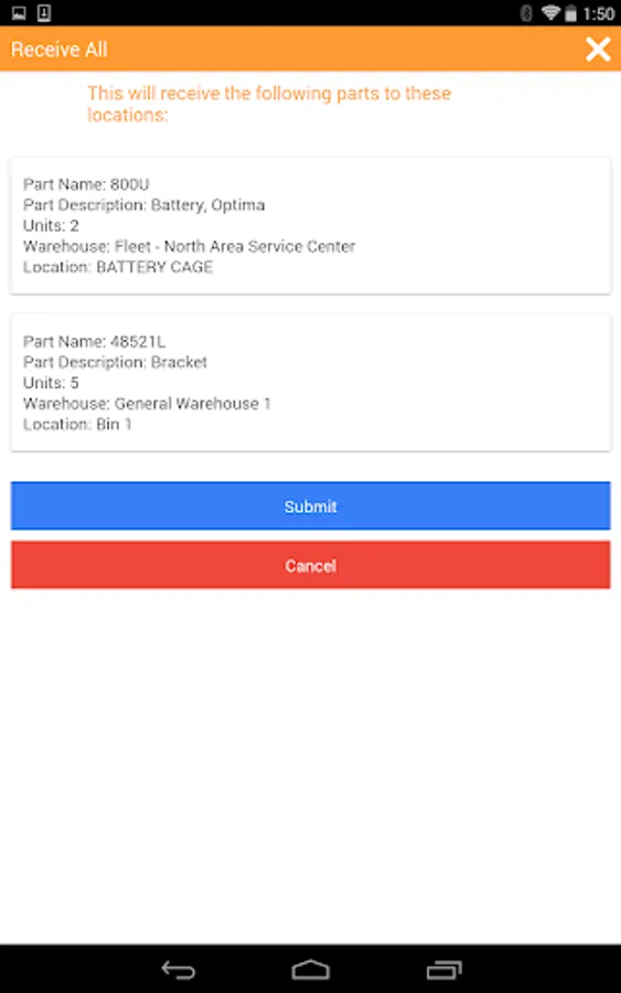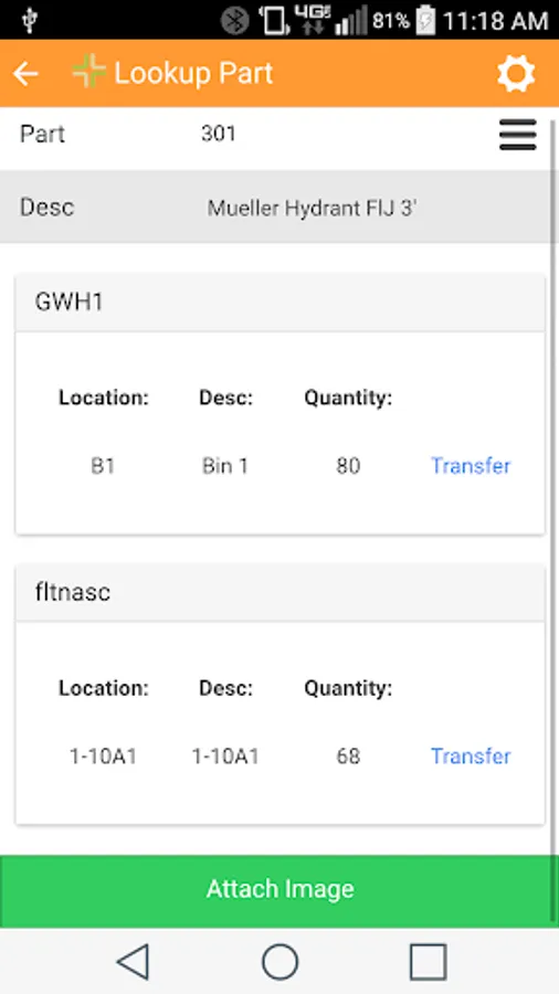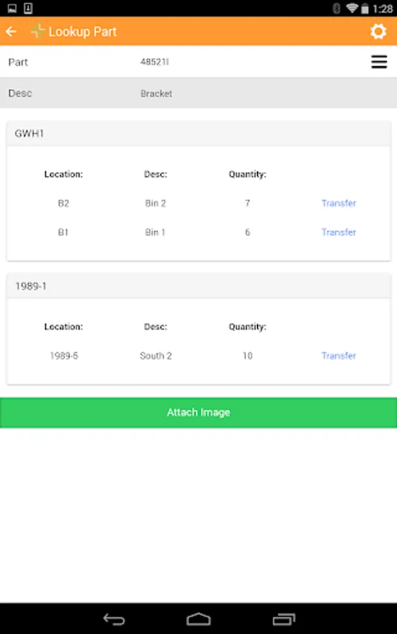 - Transfer parts between warehouse locations