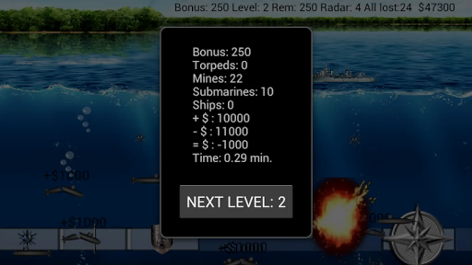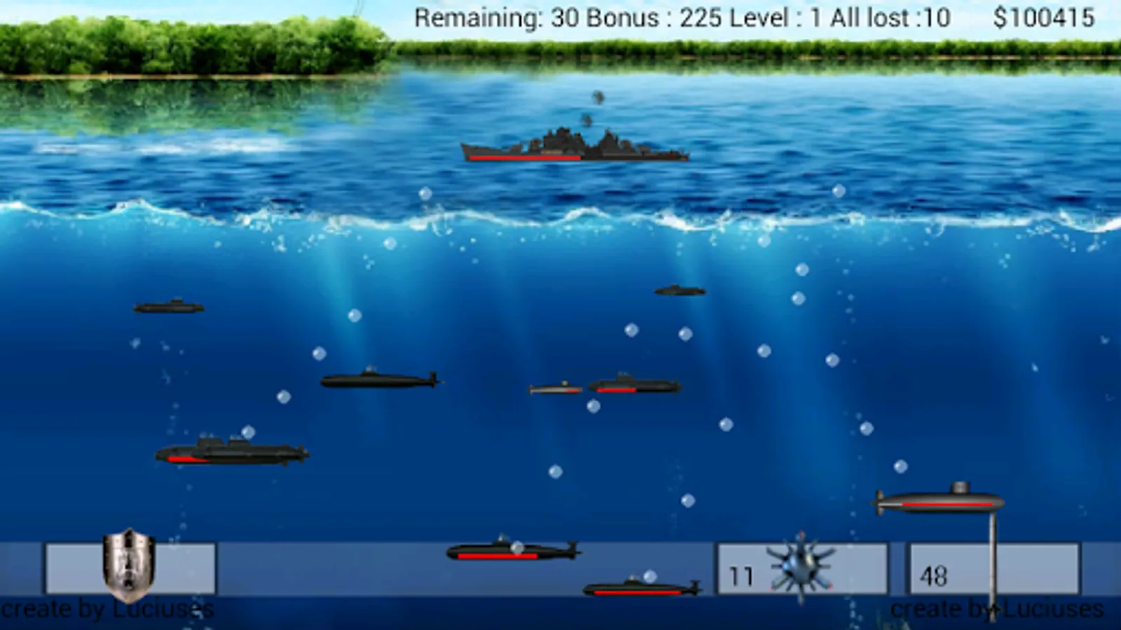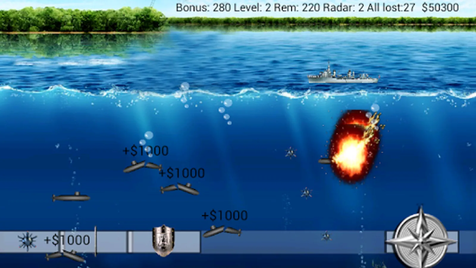 In your arsenal is torpedoes and mines , your enemy is a submarine fleet .