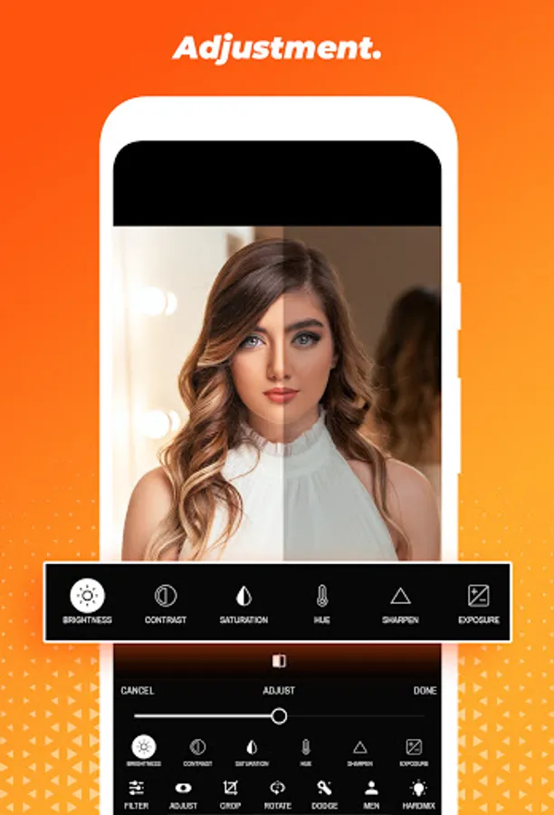 More than 35 Burn effects, +35 Divide effects, +35 Dodge effect and +35 Hard Mix effect with adjust the opacity of the filter to make the photo more beautiful.