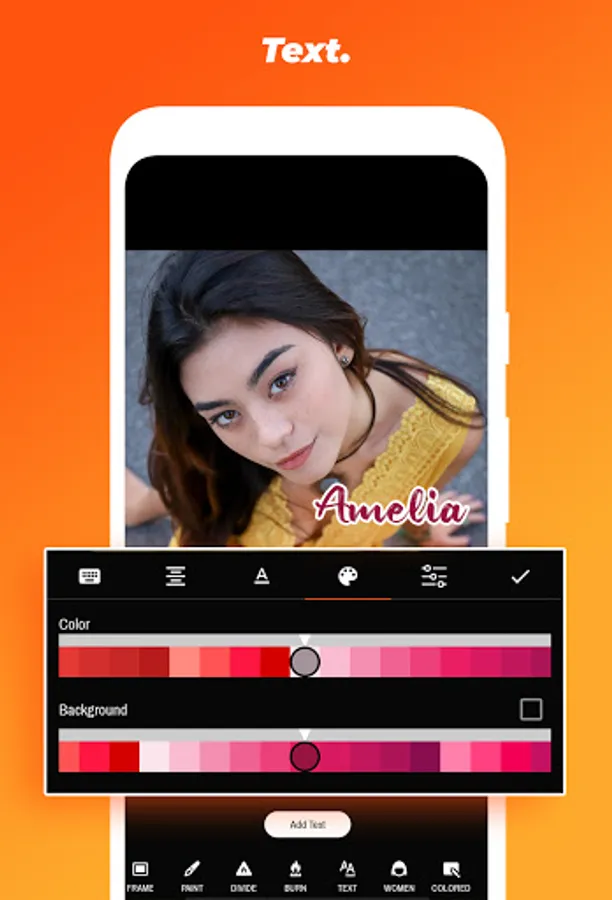 Add text and change font, size, align, opacity, flip, rotate,color and background to make the photo more beautiful.