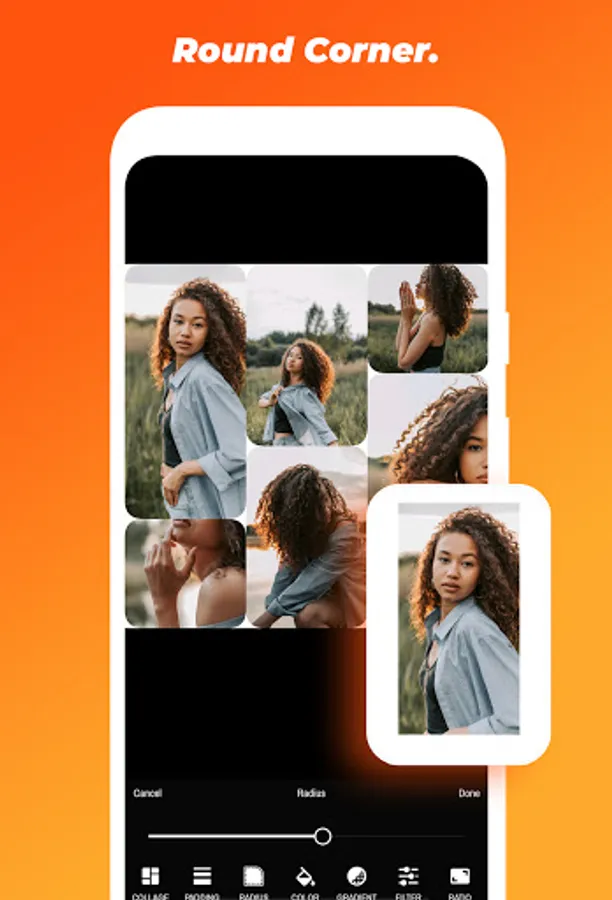 - Remix up to 9 picture into a photo collage instantly;