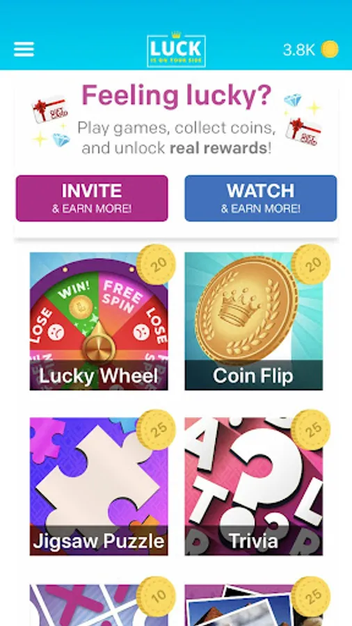 Winning LUCKY COINS allows you to enter to win the GiftCard of your choice!
