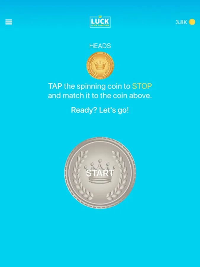 Heads or Tails? Test your agility by picking a Lucky Coin face and tapping the spinning coin to stop it. If the coin face matches your selection, you win LUCKY COINS!