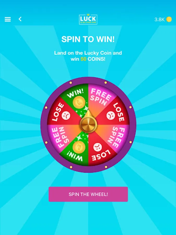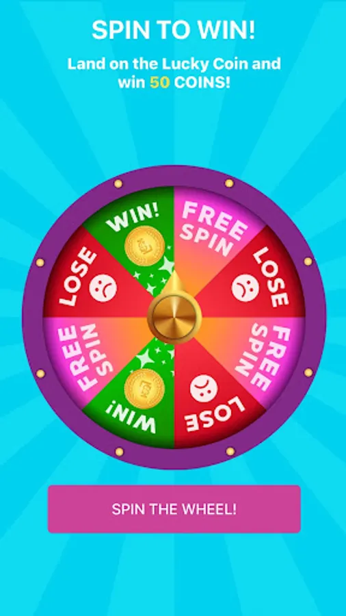 Spin, spin, spin and win! All you got to do is spin the LUCKY WHEEL, and hope for the luckiest landing! You either land on the LOSE, which unfortunately means you lose, or you land on the WIN, which fortunately means you win, or you land on the RESPIN, where luck obviously smiles back at you and gives you another chance. Ready to take it for a spin?