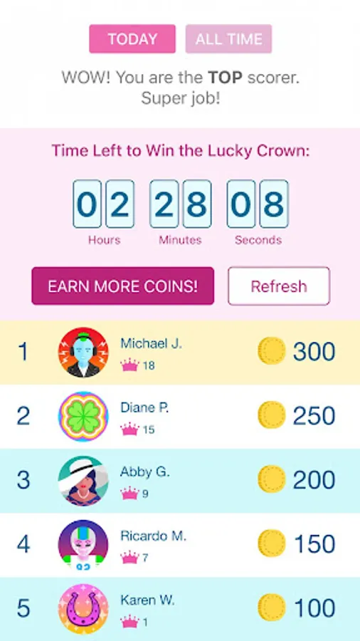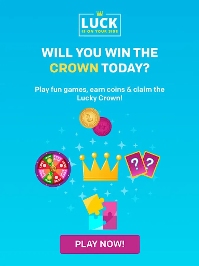Win as many LUCKY COINS as you can in the course of the day, and you will be rewarded... with a LUCKY CROWN! Visit the Leaderboard page to check your score every day, and see where you rank, compared to the other lucky users. The user with the most points is awarded the LUCKY CROWN at the end of the day.